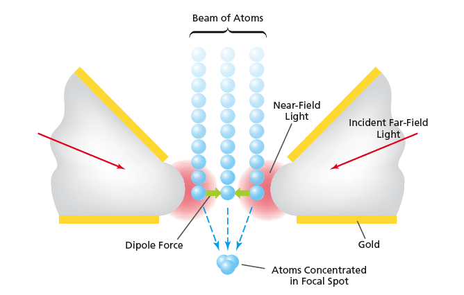 •A capability to focus beams of atoms to nanometer-sized spots could contribute to the development of nanophotonic devices, including quantum dots, which must be sized and positioned with precision.