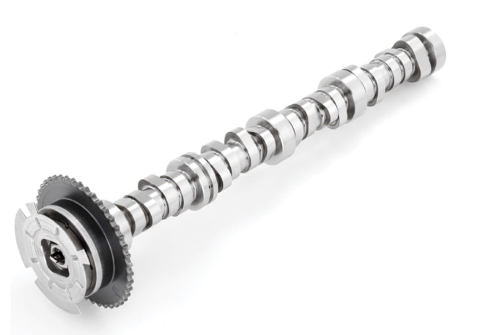 A switch to S38 alloy steel improves the strength of the LT2’s forged crankshaft vs. the LT1. A longer nose extension drives the three stacked oil pumps. The front damper has an aluminum hub and steel inertial ring equipped with a ribbed outer surface to drive accessories via rubber belts. A second damper at the rear of the engine connects the crankshaft to the dual-clutch automatic transaxle. This device diminishes torsional vibration, a concern while switching to the LT2’s fuel-saving Active Fuel Management four-cylinder operating mode.