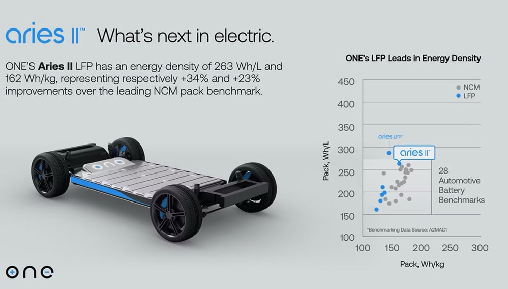 ONE’s Aries batteries are being tested today, but it’s the next evolution of the lithium iron phosphate (LFP) chemistry that’s showing the real potential here.