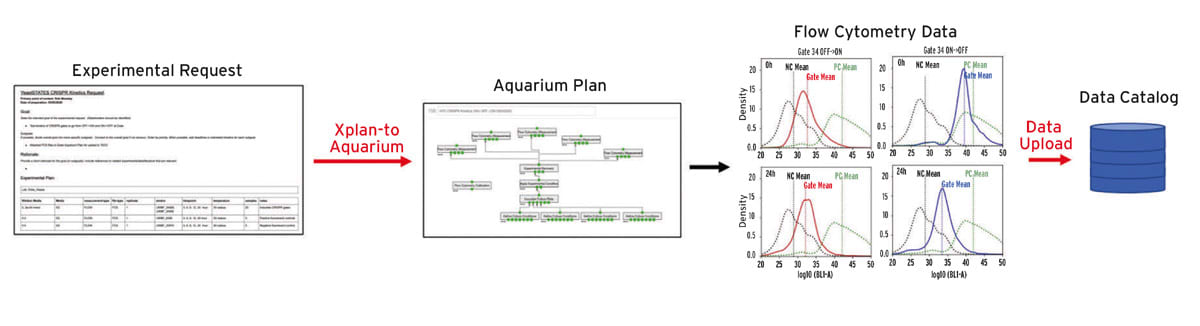 The SD2 program was structured across five technical areas (TAs), TA1 - Data-Centric Scientific Discovery, TA2 – Design in the Context of Uncertainty, TA3 – Hypothesis and Design Evaluation, TA4 – Data and Analysis Hub, and TA5 – Challenge Problem Integrator, where the Duke Team supported TA1 and TA3 capabilities. Early in the program it was realized that some of the data needed to achieve goals of this effort could not be produced by the automated and semi-automated TA3 laboratories. To merge the data collected in the benchtop laboratory of the Duke Team with the automated labs, it was necessary to utilize approaches for protocol execution and data collection that were utilized by the TA3 labs. In collaboration with the University of Washington (UW) Biofab team, Aquarium for the benchtop was developed, enabling the Duke Team’s benchtop lab to execute protocols and collect data, that when delivered to the database, was indistinguishable from data collected at the automated TA3 labs.