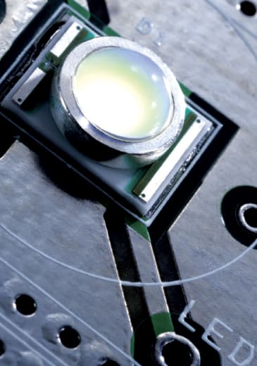 LEDs, solid-state semiconductors that convert electrical energy into light, have come a long way since they were first used for indicator lamps for consumer electronics and for illuminating small displays on mobile phones and other portable devices. The first LEDs on the market were red, followed by green and yellow. These colors can be created by a variety of semiconductor materials. (The materials regulate the wavelength and, therefore, the color of light emitted.) The key to producing white light depended on the development and efficient exploitation of blue LEDs.