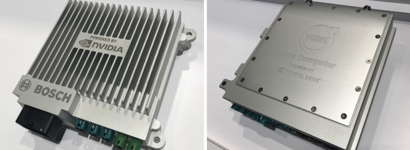Shapiro said “hundreds and hundreds” of companies use the NVIDIA Drive platform, but many keep their connection to NVIDIA private. Some of the ones who are happy to share the spotlight displayed their cars at GTC, including TuSimple, NIO and Xpeng. Automotive suppliers Bosch, Continental and Veoneer, as well as Volvo, also displayed NVIDIA-based supercomputers designed for cars.