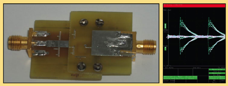 Inductively coupled circuits communicating vertically through a 3D chip-stack were demonstrated. This chip was built in a 0.35-μm process and operated at 2 GHz. Communication was possible with a chip thickness of up to 120 mm. An inductively coupled connector, prototyped in a PCB technology, was demonstrated to operate at 250 MHz. Figure 2 shows a prototype and an eye diagram.