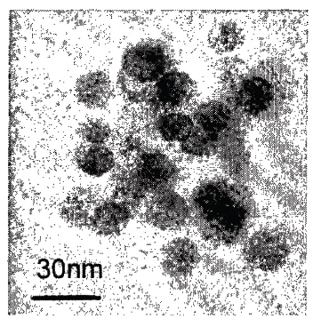 The figure shows a transmission electron micrograph of IGC-Fe nanoparticles. Deposition conditions were optimized to be able to produce 10-40 mg/h of nanoparticles with a size dispersion ΔD/D~0.1-1.0. The integrated system includes in-situ compaction and a transfer chamber to move samples to an inert-gas atmosphere without exposure to air. Ni, FeCo, Gd, GdN, Gd1-xFex, and Tb clusters were studied, as well as Gd:GdN compacts. Grain sizes varied-from less than 5 nm to over 50 nm by a combination of changing the deposition conditions and post-deposition annealing. This is a powerful method for studying grain-size dependence in soft magnets because it can produce large enough quantities of materials for extensive structural characterization and magnetic measurements, while maintaining precise control over the nanostructures.