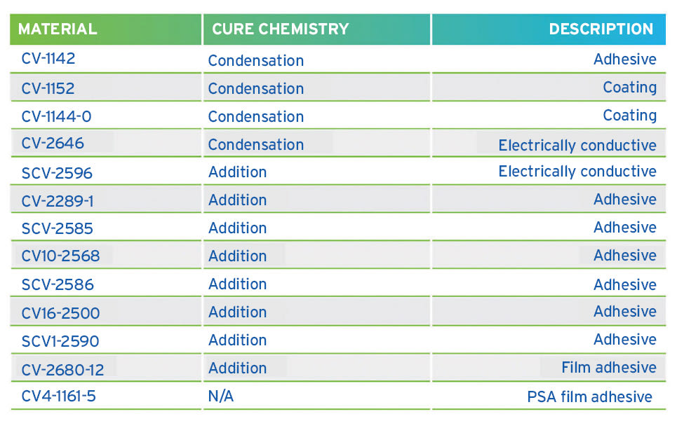 As part of function evaluation, it is important to consider what materials the silicone will be in contact with: metals, polymers or composites. If the selected silicone requires heat to cure, that could negatively impact adjacent materials, requiring the use of a room temperature vulcanizing (RTV) silicone instead. Purity: Based on the application and where the silicone will be used, it is important to understand how the risk of out-gassing relates to mission success. For the most sensitive applications, even minimal amounts of outgassed species can create the potential for mission failure. These situations might dictate more stringent volatility requirements where higher purity ultra-low outgassing silicones would be the best option. Process: Once the material function and purity levels have been determined, consider where and how the material will be applied. For example, a liquid adhesive may be a better choice than a tape for an application with very tight and complex geometries. If the application requires silicone to be applied to a vertical surface, a material that is thixotropic/non-slump would be preferred over a low viscosity system.