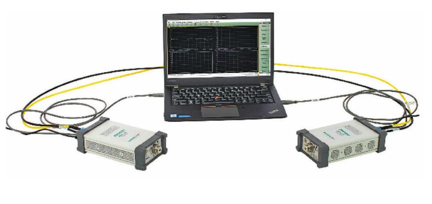 Engineers often use VNAs to test RF/μW shielding and propagation on large vehicles, as well. Typically, the configuration requires very long test port cables. At the distances required for these tests, coax cables introduce insertion loss and phase instability so significant that different transmission media, such as optical cabling, must be used to enable accurate S-parameter measurements. The additional hardware and setup complexity significantly increases the cost and time required to make the propagation and shielding measurements.