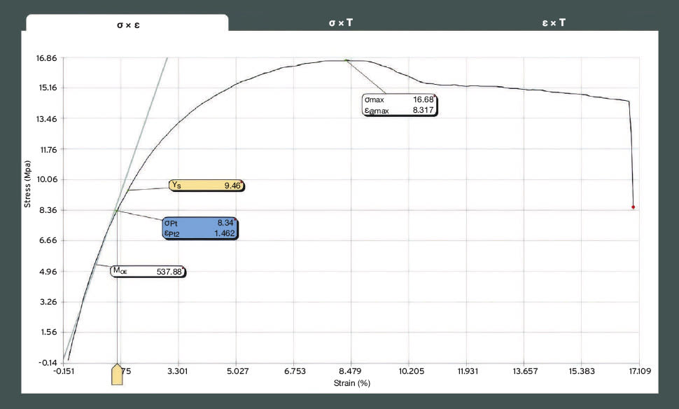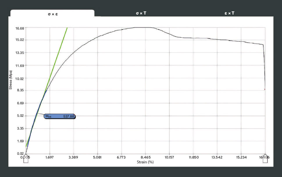 The diversity of composites presents difficulties when establishing a coherent data set. The data are likely to be completely unique to each sector, product, application and area. The most common tests for tensile strength (MPa or PSI) are tensile chord modulus of elasticity (MPA or PSI), tensile strain (%), Poisson’s ratio and transition strain (%). However, when testing composite materials, the application should not pre-suppose any prior knowledge of which measurements are required.