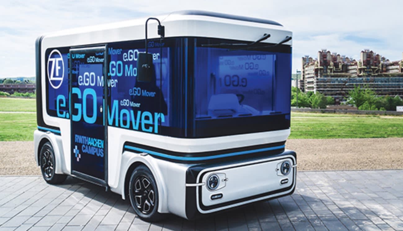 ZF aims to facilitate the acceptance of robotaxis and ride-hailing vehicles with its electric automated shuttle, the e.GO Mover. Transdev, which manages transit for over 11 million passengers per day, is adding the e.GO Mover to its vehicle fleet. Scheider said he expects sales volumes for the e.GO Mover to reach five-figures by 2020-2021, but it’s mainly a proof of concept for its ecosystem collaboration, and not targeted at making ZF a vehicle supplier.