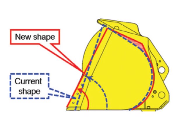 “The front edge (side edge) is curved for better carry. Back wrap is better designed so material flows and fills better as the bucket penetrates into a pile,” the spokesperson shared.