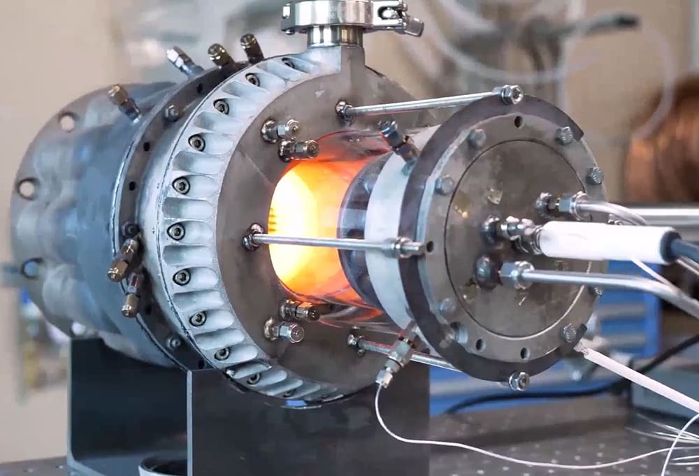 “Another interesting observation versus an internal combustion engine is you’ll notice this process is continuous and complete,” Mook added. “It’s not a series of explosions like you would normally see [with] internal combustion.” Running the process using a conventional fuel like diesel is very similar to running natural gas, according to Mook: “You’re seeing a very clean flame with minimal soot and particulate, which just shows the cleanliness of this system.”