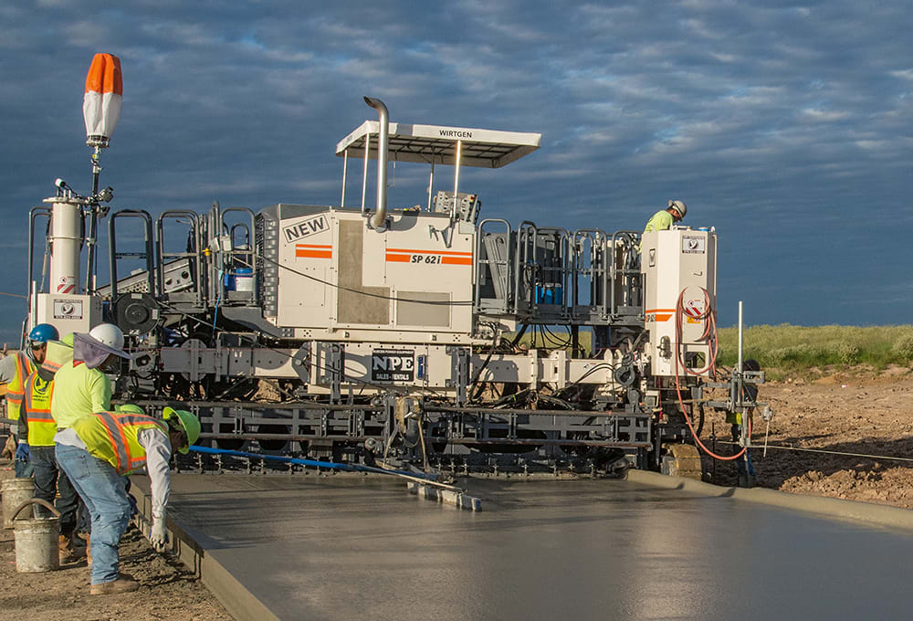 Large equipment such as pavers or aggregate crushers may have multiple emergency-stop switches (e-stops) located so that operators do not have to run around vehicles to power off systems in case of emergency. The e-stops connect to relays, enabling remote powering down of systems.