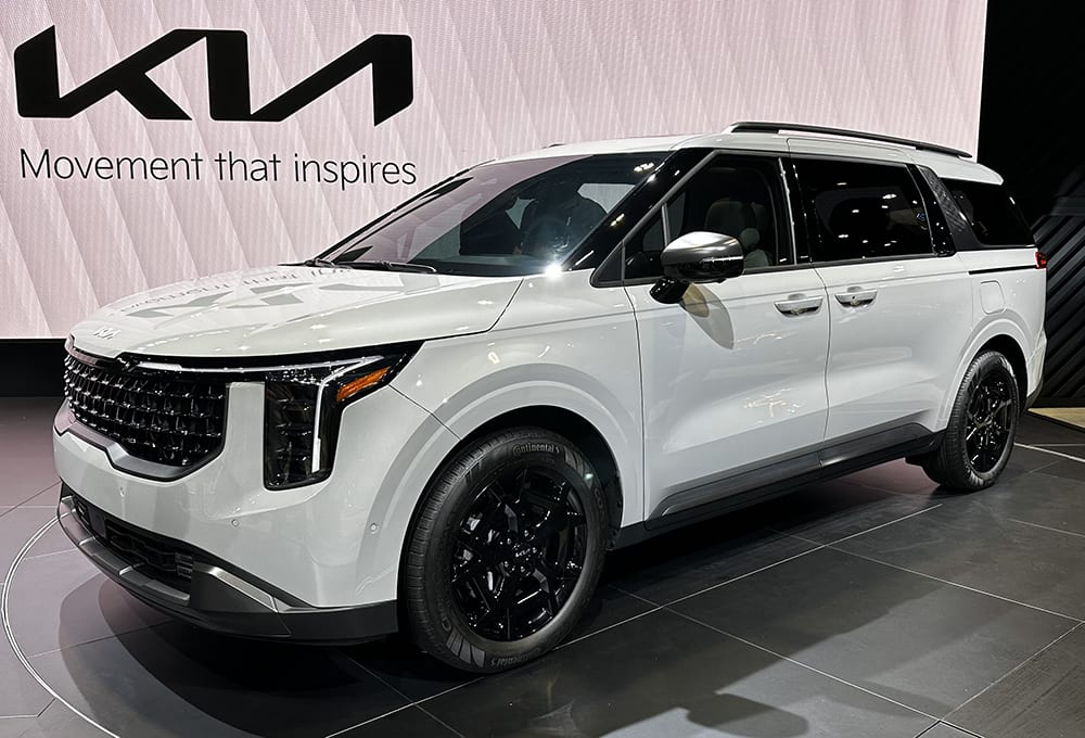 The revised 7- or 8-passenger Carnival receives additional benefits from the hybrid system. Using a unique 54-kW electric motor that was initially developed for plug-in hybrid powertrains using the same platform — such as the Sorento PHEV — the motor is used not just to enhance acceleration at lower speeds but also for some of the Carnival’s chassis-control functions. “E-Handling” uses the electric motor braking power to improve cornering agility and stability. E-Evasive Handling Assist helps control load movement on the front and rear wheels during emergency steering for better evasion performance. Finally, E-Ride improves ride comfort by automatically adjusting damping as the vehicle goes over bumps.