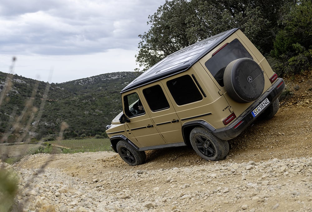 If only the G 580 was as agile on pavement. The G 580 will surge to 60 mph (96 km/h) in a stealthy 4.7 seconds, only a half-second behind the brawling AMG 63. Drivers can select four levels of electric recuperation. And this plug-in G-Class can automatically disconnect its front motors and wheels for a claimed 10% gain in energy efficiency.