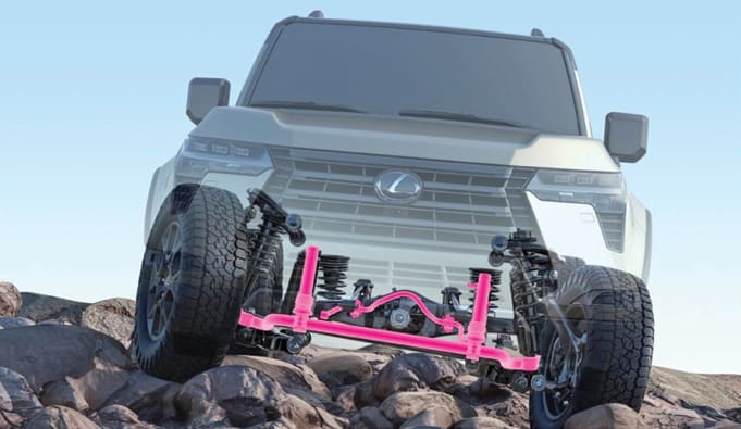 Lexus’ off-roading history goes back at least to the LX 450 in the mid-1990s. The first GX, the GX 470, debuted in 2002, and the new Kinetic Dynamic Suspension System (KDSS) became available for the GX in 2003. KDSS improved stability by electronically controlling the sway resistance of the front and rear suspension anti-roll bars. Two decades later, Tsukasaki and his team improved the off-road capabilities of the new GX by introducing a new available feature: Electronic KDSS (E-KDSS).