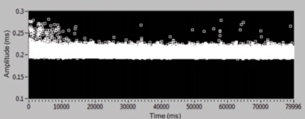 We also measured the latency in the communication of the CAN messages from the automotive HIL to the RTE. The measurement was essential to test that the system was successfully transferring CAN messages. The measurement results indicated that the time-delay of communication was around 0.2 ms as shown in Fig. 6. The mean of the communication delay based on several measurements is found to be 0.2057 ms with a minimum delay of 0.1913 ms and a maximum delay of 0.3898 ms.