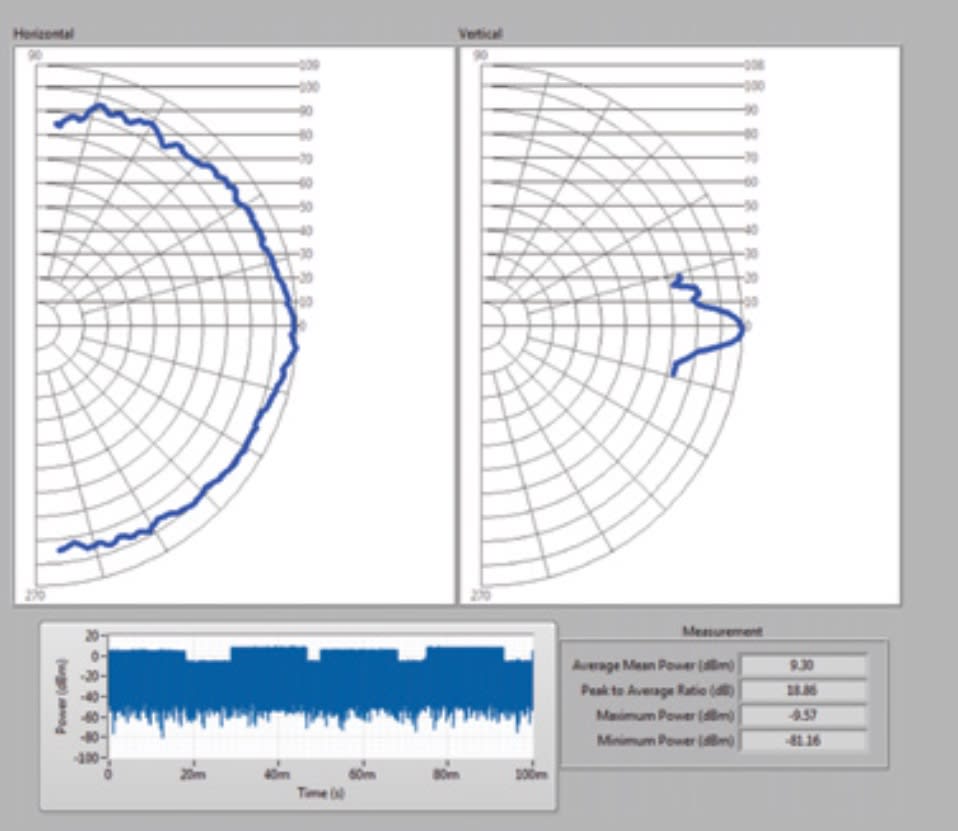 The Delphi radar sensor was characterized using our mmWave testbed, including power and beam width measurements, as shown in Fig. 5. This is realized by using the same RTE hardware but with a different software module. The radar transmitted signal contains two chirps of different power levels. The higher power chirp will be used for long-range targets and the lower power chirp will be used for short-range targets.