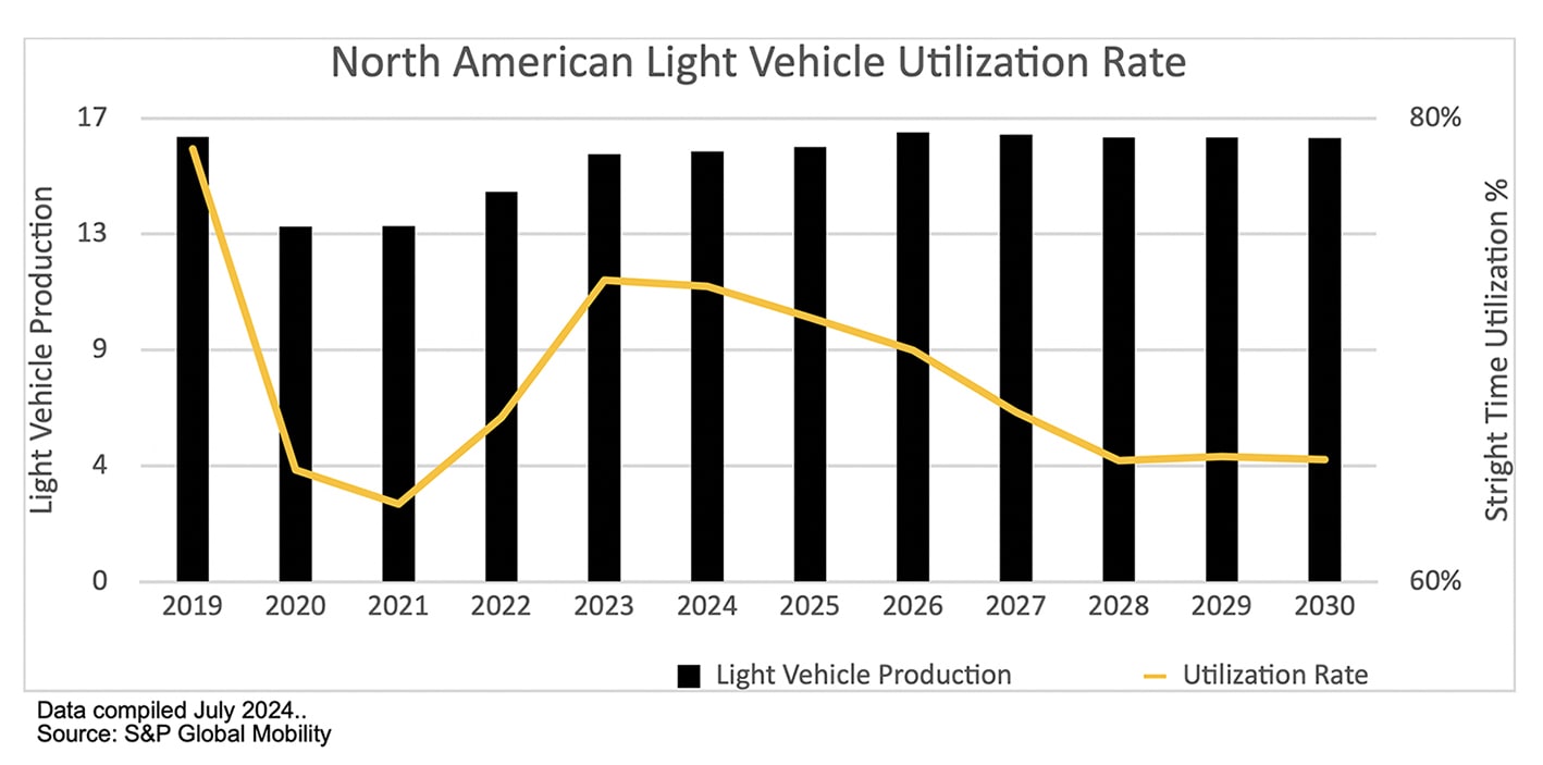 As the industry worked through accelerated production volumes last decade, there were few concerns surrounding low capacity utilization in our fixed-cost-heavy North American ecosystem. With the benefit of stronger demand and a rich product mix, the industry was allowed to shift attention toward other priorities. Having too much capacity or not properly utilizing it was not a major concern in a market that averaged 17 million units from 2016 through 2019. The first few years of this decade – with the onset of COVID, low chip availability, growing inflation and a host of other supply disruptions – provided plenty of reasons not to focus on emerging utilization issues.