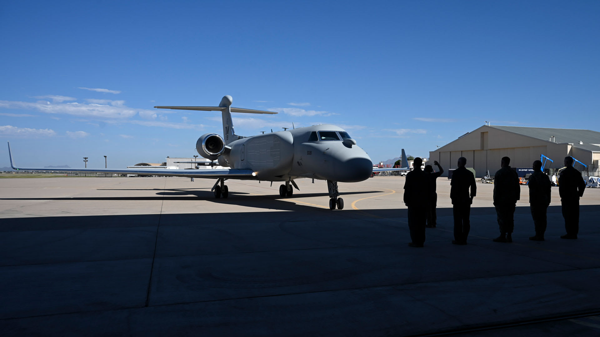 The U.S. Air Force Air Combat Command received its first EA-37B Compass Call on Aug. 23 for pilot training at Davis-Monthan Air Force Base, Arizona.