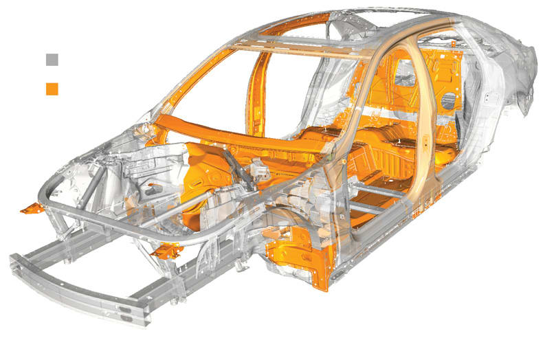 Cadillac CT6: The 2016 Cadillac CT6 (Figure 5) is built around what General Motors calls the “Fusion Frame,” a concept in which a steel center section is clad with aluminum panels for everything visible. Aluminum also is used for components such as crash bars.