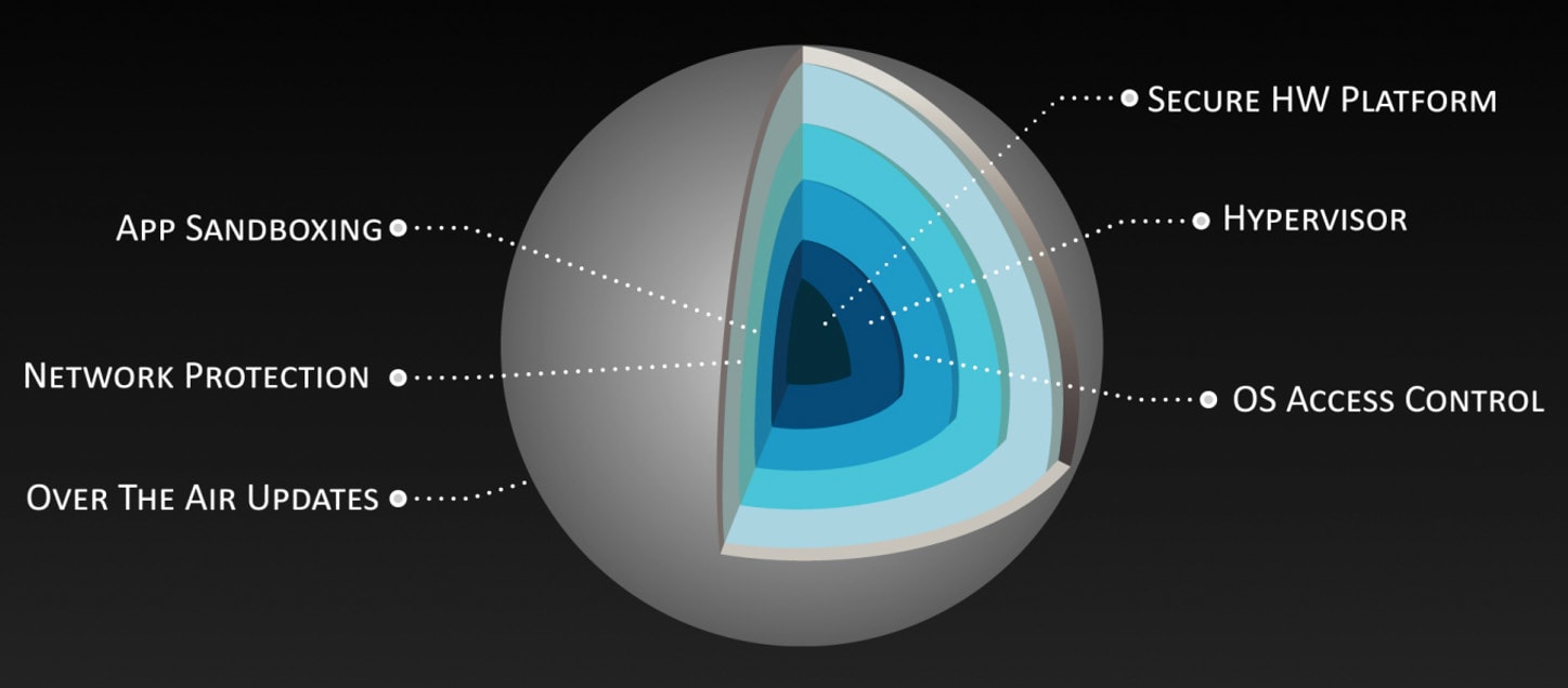 Operating system providers like QNX Software and Green Hills Software use partitioning to ensure that a problem with an app on the infotainment system won’t impact any other functions. Other vendors such as Wind River Systems uses hypervisors to prevent any unwanted interactions or cycle stealing between modules.