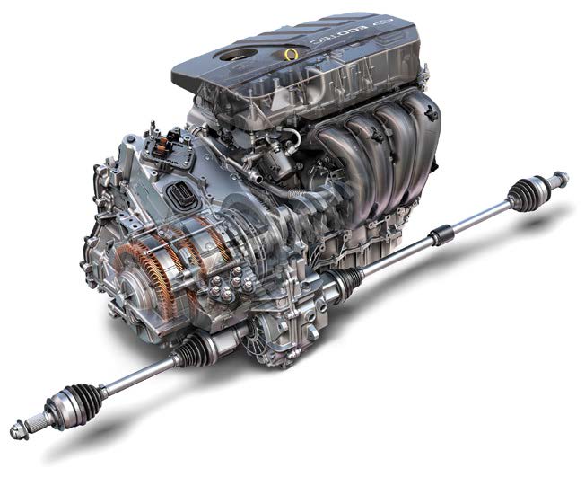 A 1.5-kW·h battery pack, its 80 lithium-ion cells supplied by Hitachi, provides electric power and enables EV-only propulsion at up to 55 mph (89 km/h). The ICE automatically engages at higher speeds and loads when necessary to provide additional power. Total system power is rated at 182 hp (136 kW).