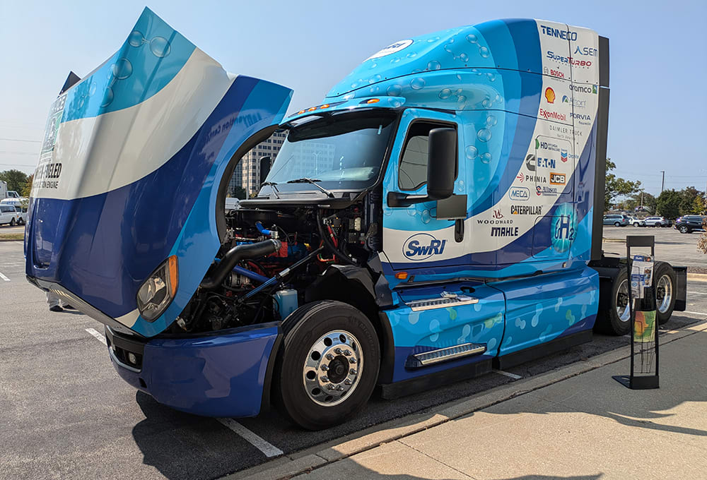 Backed by a consortium of companies, Southwest Research Institute’s demonstrator truck aims to prove the commercial viability of hydrogen engines for on-road trucks.