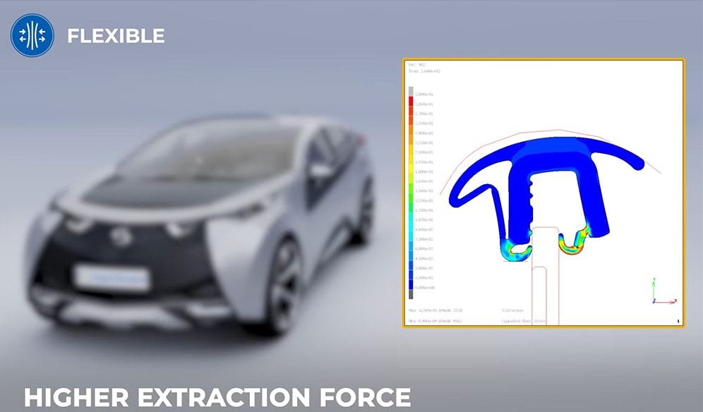 “We actually saved 44% weight savings on a four-door vehicle. That's taking that metal EPDM and replacing it with our thermoplastic FlexiCore,” Murdock said. “And by the time you look at all that, that was about a 50% weight savings just in the carrier alone. And then going to the TPV materials, we're able to really realize a total of 44% weight savings over the current EPDM metal carrier.