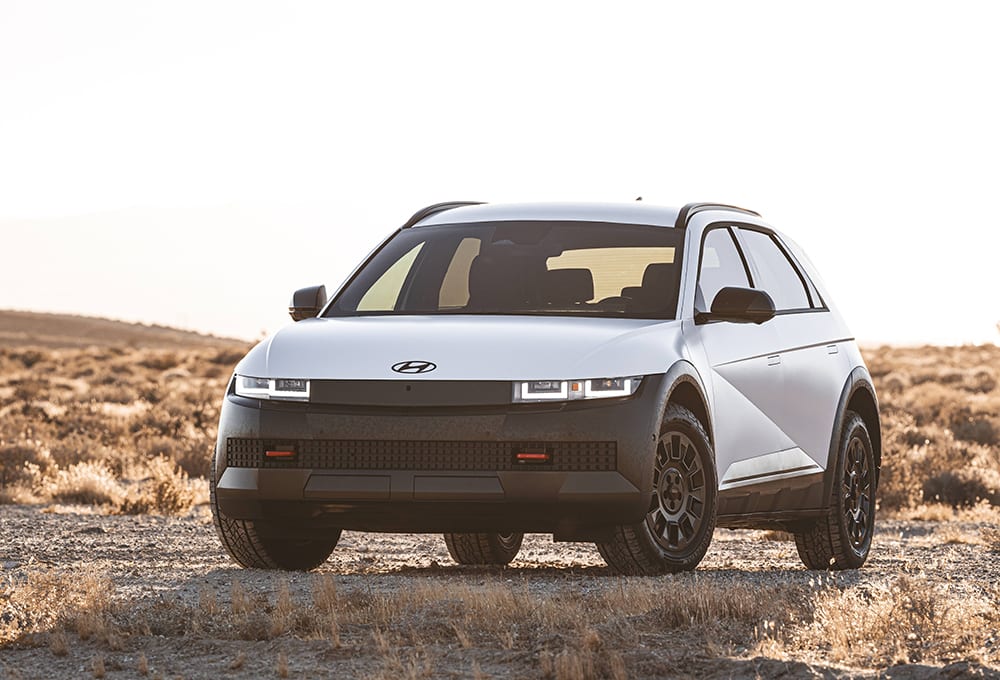 Hyundai already offers a rollicking Ioniq 5 N that delivers up to 641 hp, and a fun-to-drive quotient that tops many pricier EVs. For 2025, Hyundai cast its sights off-road — or at least camping trails or icy driveways — with a new XRT model with sturdy 18-inch wheels that recall the “steelies” of old. All-terrain tires, drive modes for Sand, Mud and Snow, a 1-inch (25 mm) body lift and handsome “digital camo” body cladding round out the package. We drove the XRT through some desert washes and gullies near Palm Springs