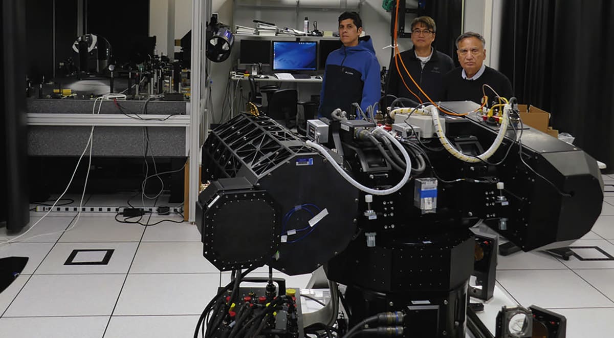 A 1-kilowatt laser beam (roughly a million times more powerful than a classroom laser pointer) can fire from the telescope. If the laser beam were to be used, it’s generated by a separate external unit and then directed into the telescope, which then projects the laser beam onto the target. However, its use with the HBCRT isn’t required for the initial development of this research, which allows the work to be easily conducted inside a laboratory.