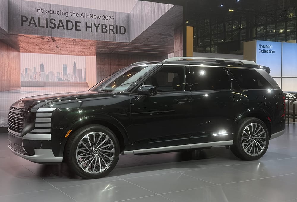 Hyundai didn’t bring any new EVs to New York, but it did introduce the first Palisade with a hybrid powertrain. The 2026 Palisade will be available with a 2.5-L turbocharged engine that produces 258 hp (192 kW) and two electric motors that will provide 90 more hp (67 kW). The total estimated system output is 329 hp (245 kW) and up to 339 lb-ft (460 Nm). All that power comes while delivering over 30 mpg in a three-row SUV in some configurations, said Hyundai’s manager of product planning, Melvyn Bautista.
