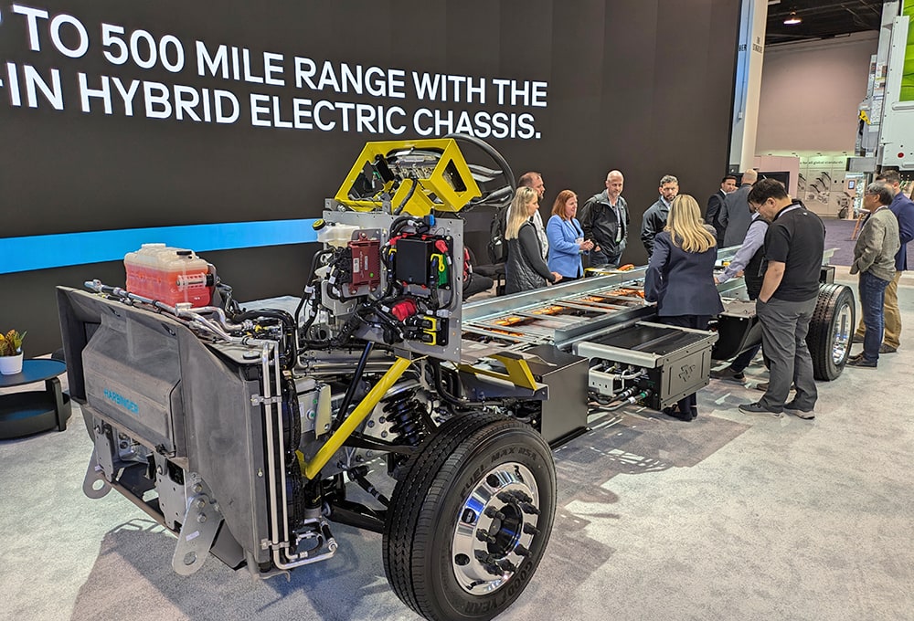 Harris also put a shot across the bow of Harbinger’s competitors, some of which were in attendance during its press conference. “Most of [our competitors] are offering trucks that are repowered versions of gas and diesel platforms. This leads to compromises in safety and their ability, and above all, to increased cost. We started fresh with a clean sheet and designed an all-electric medium heavy chassis from the ground up.”