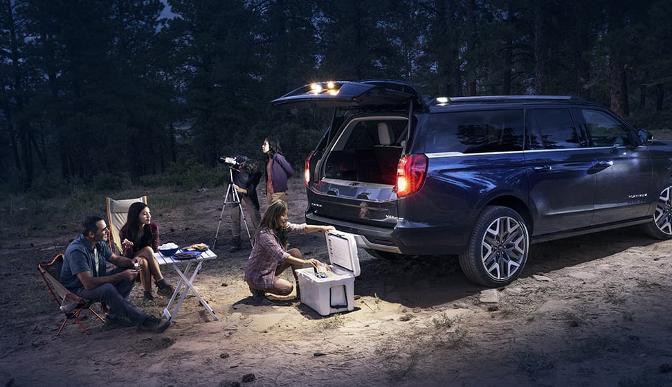 A four-zone lighting system is available for the exterior that makes living or working around the vehicle at night easier. Control of the individual zones is handled via the Expedition’s redesigned Digital Experience infotainment system. Also on the exterior are automatic running boards that extend outward only during ingress and egress.