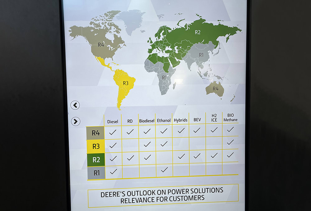 For compact equipment, Deere is focused on utilizing battery-electric systems. “And for standard production class, hard work, full-on duty cycle, it’s big engines – it’s going to be there for a long time, like for a combine or something where you’re really high on the duty cycle and load factor and it never lets up,” Lefebvre said.