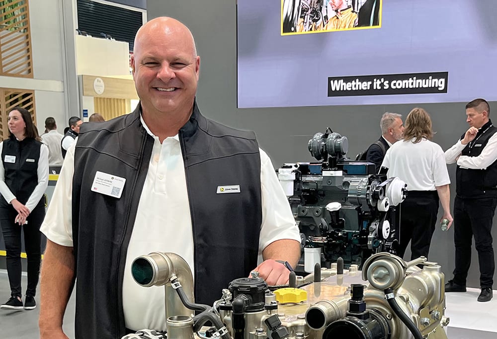 That lineup on display at Bauma included already-available clean-sheet engines, the JD14 and JD18, which extended Deere’s power range beyond what it previously offered, and an “evolution” engine in the JD9, which features new aftertreatment packaging developments and calibration efficiency improvements.