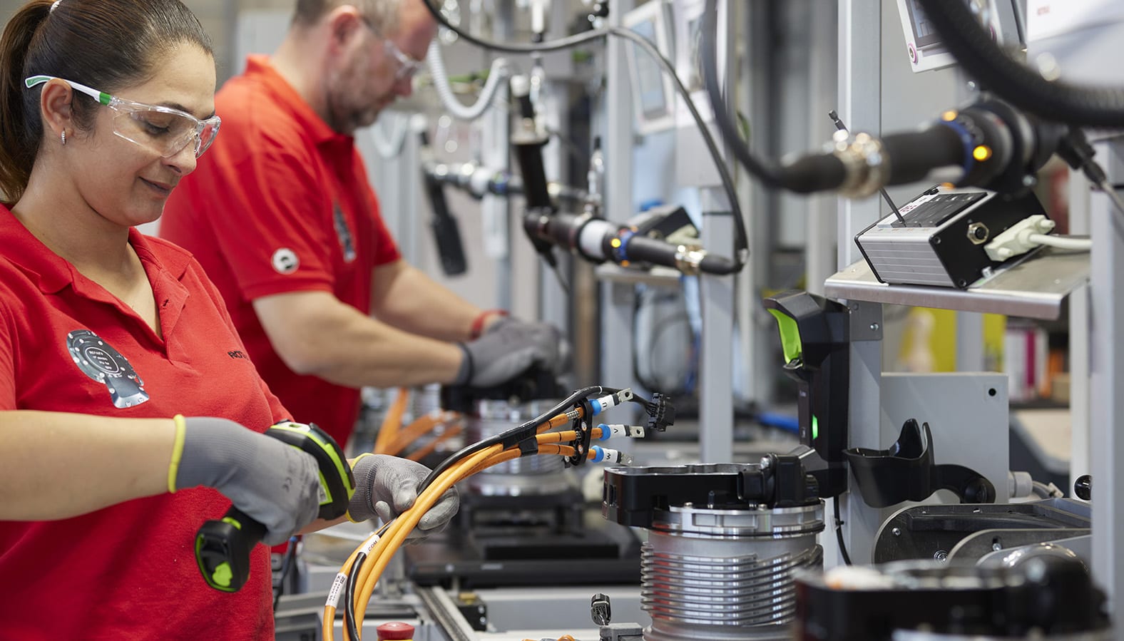 The motor itself is built within the Gunskirchen facility. A combination of automated and manual production. Machines wind the copper and get the stator and motor ready to be put together. The marrying of the stator and motor is done manually. The number of individuals and stations varies according to Rotax. It's dependent on production volumes.