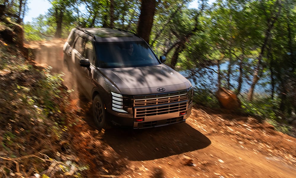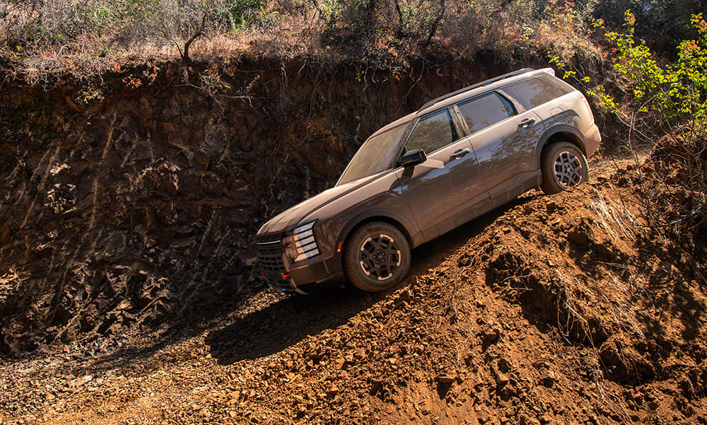 In the middle of the drive, Hyundai had us step out of the Caligraphy-trim Palisades and into the XRT Pro, which starts at $49,370 (destination fee: $1,495). The automaker set up an off-road course along a dirt trail that was awkwardly narrow and far more complex than, really, any Palisade driver will encounter.
