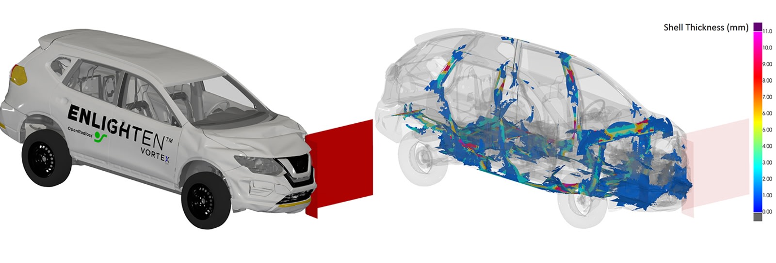 Winner: Vortex CAE won for its Enlighten topometry-based optimizer for the design of lightweight crash structures. “What we have achieved is to close the design loop between optimization and design validation in terms of CAE,” a company representative said. The new solver offers direct crash and impact optimizations using full-fidelity models, with outputs producing pre-validated CAE solutions. The team also developed a 3D generative-design methodology to identify and size fundamental structural features early on. A generative-design case study reduced body-in-white mass by 77% while meeting or exceeding structural performance in 13 primary crash load cases. Assuming a 50% mass-retention loss, they estimate that $500 million in raw material costs for this vehicle could have been saved, along with 1.35 million tons of CO2 from manufacturing alone.
