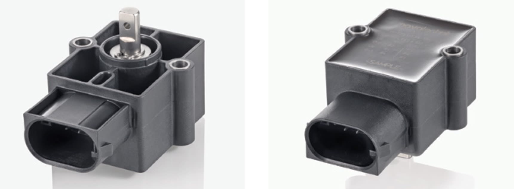 In automatically steering the harvester, the position of the articulation of the front needs to be monitored and the angle deviation from dead center needs to be known with precision in both left and right directions. An ultrasonic sensor was first used by Trebro but found that a more reliable method had to be employed. A Novotechnik RSB 3600 absolute position sensor was selected as robust, reliable and with good accuracy for the application. On the harvester, the sensor measures movement covering 0 to 220 degrees of articulation. The robustness of this sensor is highlighted by its operating temperature range of -22 to +185°F (-30 to +85°C), shock and vibration of 50 and 20 g, respectively, as well as sealed housing to IP67.