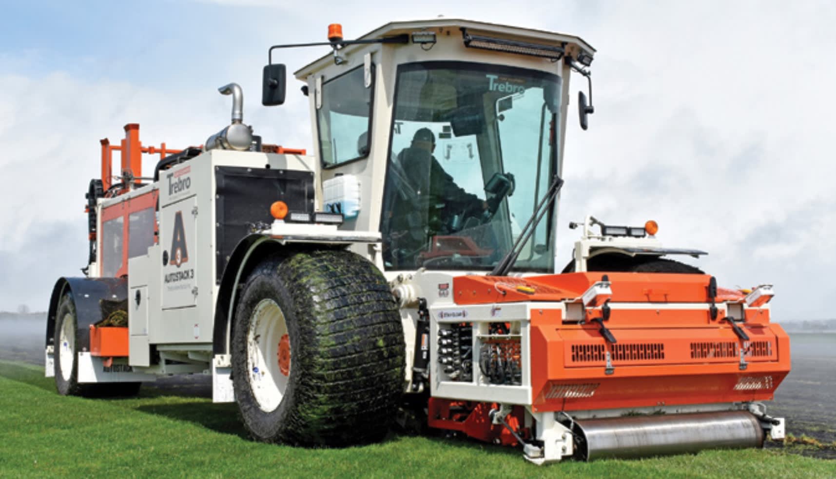 Trebro’s AutoStack 3 harvester is an automated combine for turf that steers itself while an operator monitors and performs quality control actions when needed. The harvesting process combines several automated control processes.
