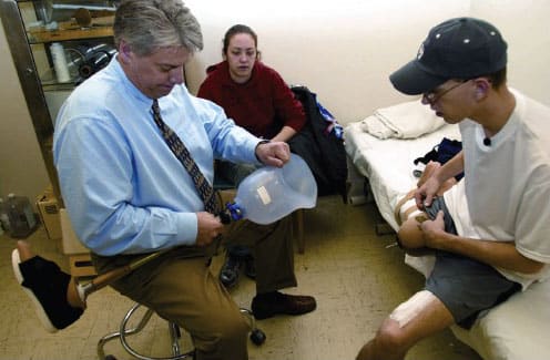 CTD would make the shape-memory material for prosthetics in the same way it makes an EMC hinge — with polymers, resins, and fibers heated to form a brace-like socket fitting, then cooled to keep the desired shape. The company also is considering an offshoot of the prosthetic concept, using the basis of the composite hinge technology to develop “body-interfacing” inserts for ski boots and other protective sporting gear. Such boot inserts would be made using the same process as the hinges and prosthetic devices. A heat-reactive, shape-memory polymer insert would be put into boot linings to provide a proper fit, while allowing some expansion when the user’s feet start to swell, such as with prolonged activity.