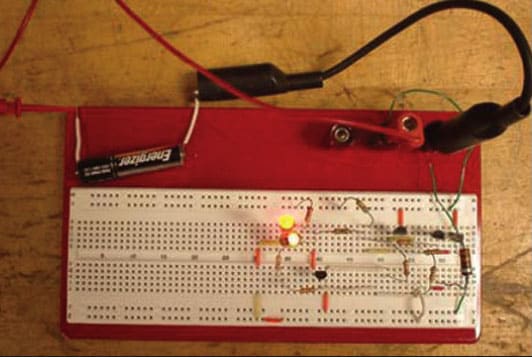 This circuit was test-built to be used as a metric to evaluate an isotope battery.