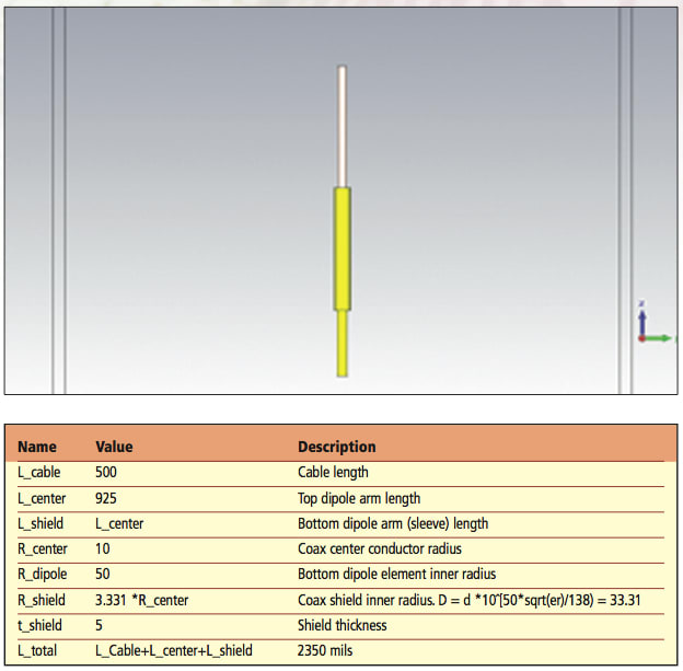 One such solver, CST Microwave Studio®, offers many methods of solution that can simulate open-boundary, radiating structures. One example shows the relative utility of the simulation tool. Presented in Figure 2 is the input page for a 2.4-GHz sleeve dipole antenna. The input page contains the dimensional and material parameter inputs required to carry out the simulation.